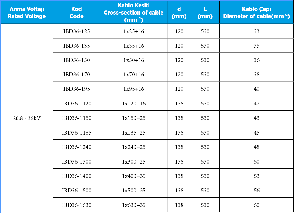• 36kV Dahili Tip Tek Damar Isı Büzüşmeli Kablo Başlığı